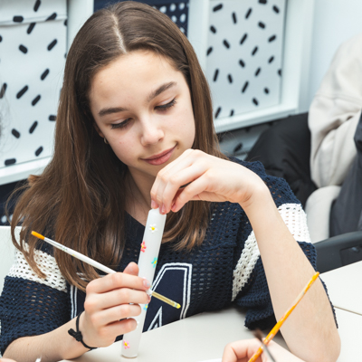 Oferă elevilor noștri oportunitatea de a pune în practică cunoștințele acumulate: cos la mașină, gătesc, folosesc diverse instrumente pentru a ajunge la un produs finit.
